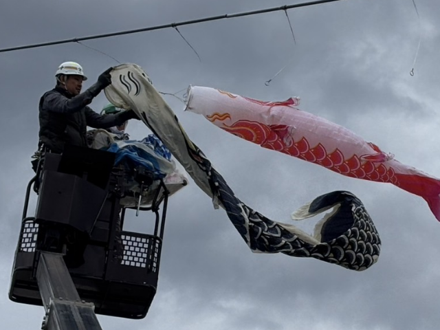-有限会社川村組 北上展勝地こいのぼり掲揚作業-